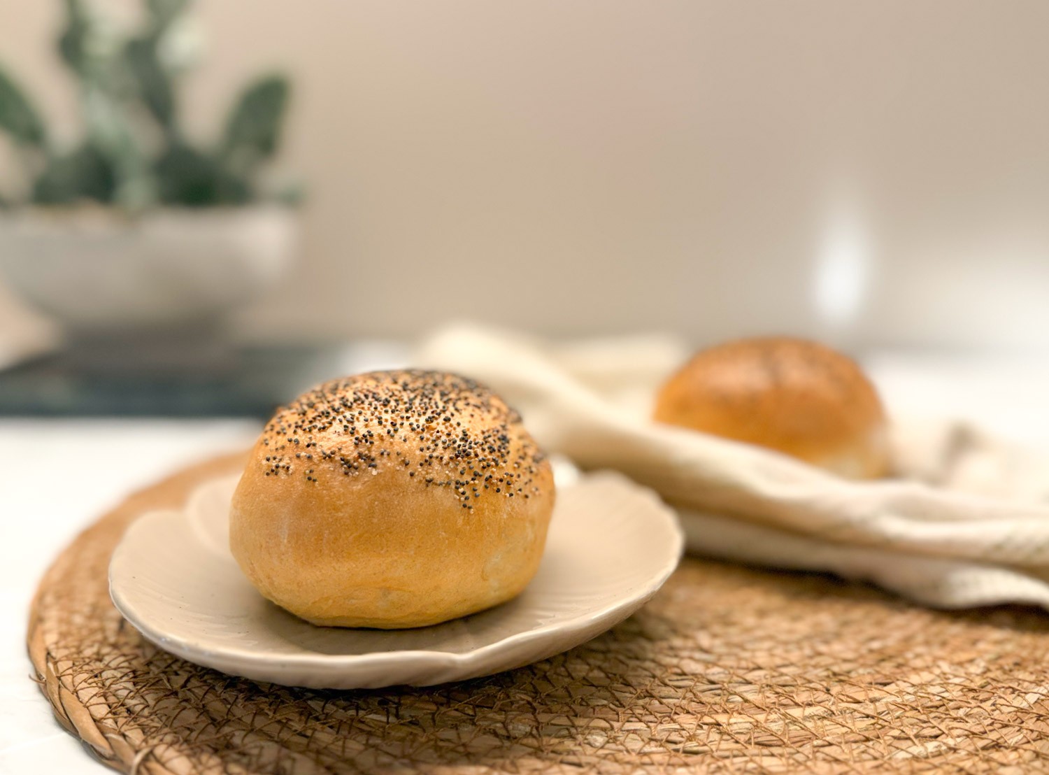 Sprødt, klassisk rundstykke med let gylden skorpe og blød krumme – et sikkert valg til morgenbordet.