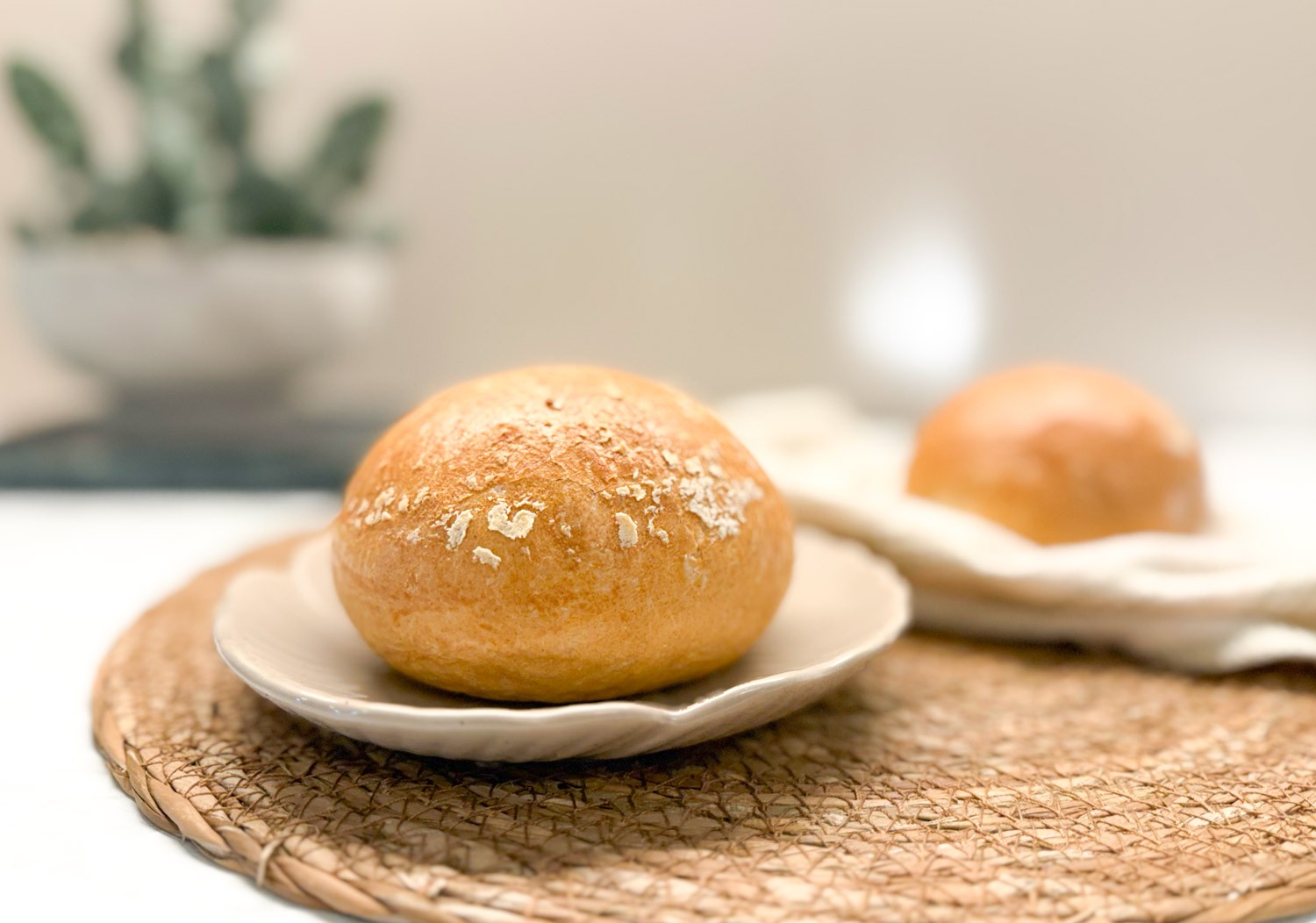 Sprødt, klassisk rundstykke med let gylden skorpe og blød krumme – et sikkert valg til morgenbordet.